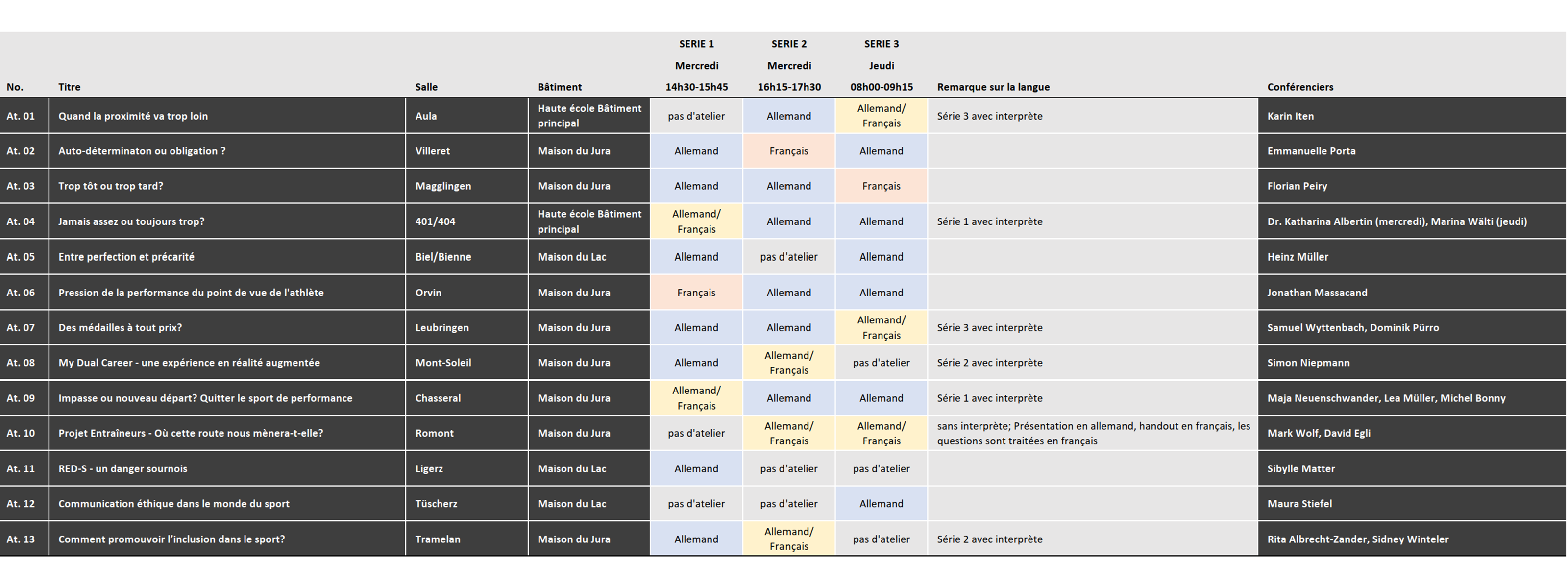 Conférencier: Simon Niepmann, conseiller d’orientation, Swiss Olympic (a lieu uniquement le mercredi)